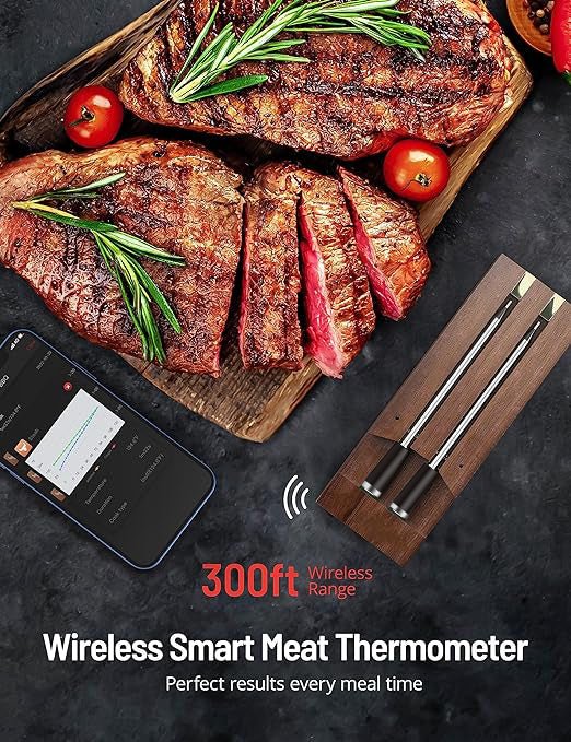 Cirsureas Walnut Dual Probe – 500ft Wireless for BBQ, Grill & Outdoor Cooking